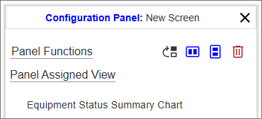 Click New to create a new screen. Initially one blank panel will be shown. Use the Configuration Panel on the left side of the screen to configure the panel. Click on an option under Panel Assigned View to choose what type of content to display. This default starting panel can also be split into multiple different panels. Once a panel has been split, these panels can be removed or repositioned at will.