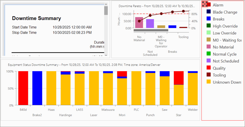 - Equipment Status: Some Views allow displaying data for General or Specific statuses. Others will show a list of available Specific and General Statuses and allow for filtering data to display only for the selected statuses.